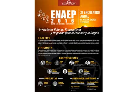 La programación se encuentra lista para el XI Encuentro Anual de Energía, Minería y Petróleo, ENAEP 2016, a realizarse en Quito, en el Hotel JW MARRIOT, el próximo 5 de octubre, a cargo de la empresa Seminarium. El evento se divide en dos ciclos de conferencias: en el primero estarán, entre otros expositores, el nuevo […]
