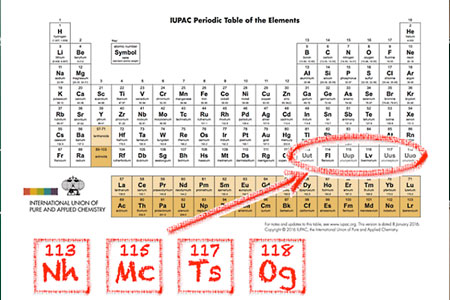 Nihonio, moscovio, téneso y oganesón, confirmados como nuevos elementos de la tabla periódica