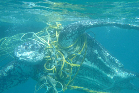 Cientos de tortugas marinas mueren cada año enredadas en basura