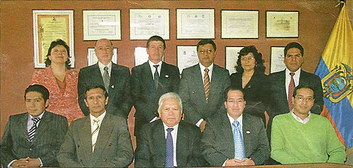 Foto: Consejo Superior Politécnico de la UPEC de izquierda a derecha, Arriba: Msc. Ruth Salgado, Dir. Emfermería; Ing. Gustavo Lucero, Dir. Turismo (E); Lic. Julio Peña, Dir. Desarrollo Integral Agropecuario (E); Dr. César Enriquez, Dir. Comercio Exterior; Ing. Gladys Urgilés, Dir. Administración de Empresas; Ing. Luis Vela, Representante Docentes. Abajo: Lic. Gandy Montenegro, Representante Empleados y Trabajadores; Msc. Jorge Bolaños, Vicerrector; Dr. Hugo Ruiz, Rector; Dr. Richard Mora, Secretario Procurador; Sr. Byron Guerrero, Representante de Estudiantes.