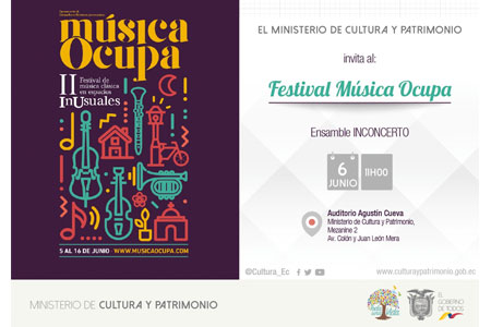 En el marco de la segunda edición de Música Ocupa,Festival de música clásica en espacios “InUsuales”, el miércoles de 2018, a las 11:00 horas, el Ensamble InConcerto, presentará una selección de música de los siglos XVIII y XIX, en el Auditorio Agustín Cueva del Ministerio de Cultura y Patrimonio. Música Ocupa pretende acercar la música clásica […]