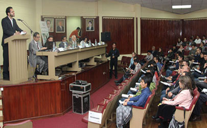 El subsecretario de Descentralización de la Secretaría Nacional de Planificación y Desarrollo (Senplades), Gustavo Bedón, intervino este miércoles 7 de noviembre de 2012 en el VIII Simposio Nacional de Desarrollo y Planificación Territorial, en Cuenca.