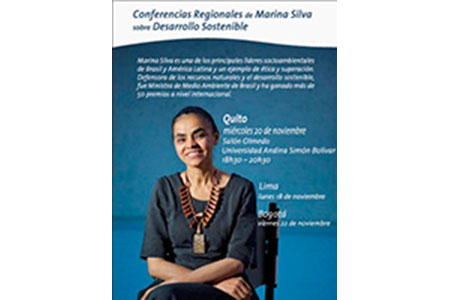 El Área de Estudios Sociales y Globales de la Universidad Andina Simón Bolívar (UASB) y la Fundación Futuro Latinoamericano invitan a las conferencias regionales de la experta brasileña Marina Silva sobre Desarrollo sustentable.