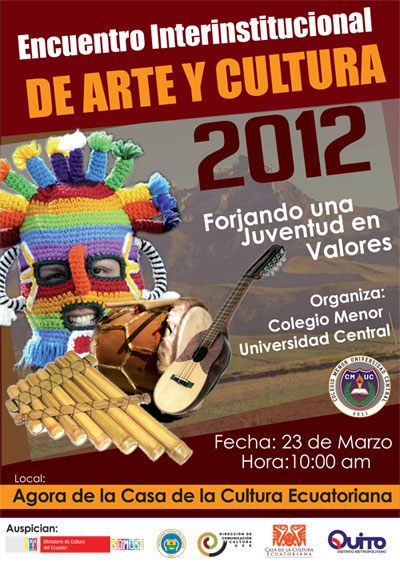 El Colegio Menor de la Universidad Central del Ecuador extiende una invitación a la comunidad universitaria al Festival Interinstitucional e Intercultural Arte y Cultura, que se desarrollará en el Ágora de la Casa de la Cultura Ecuatoriana (CCE), el viernes 23 de marzo, de 10h00 a 13h00.