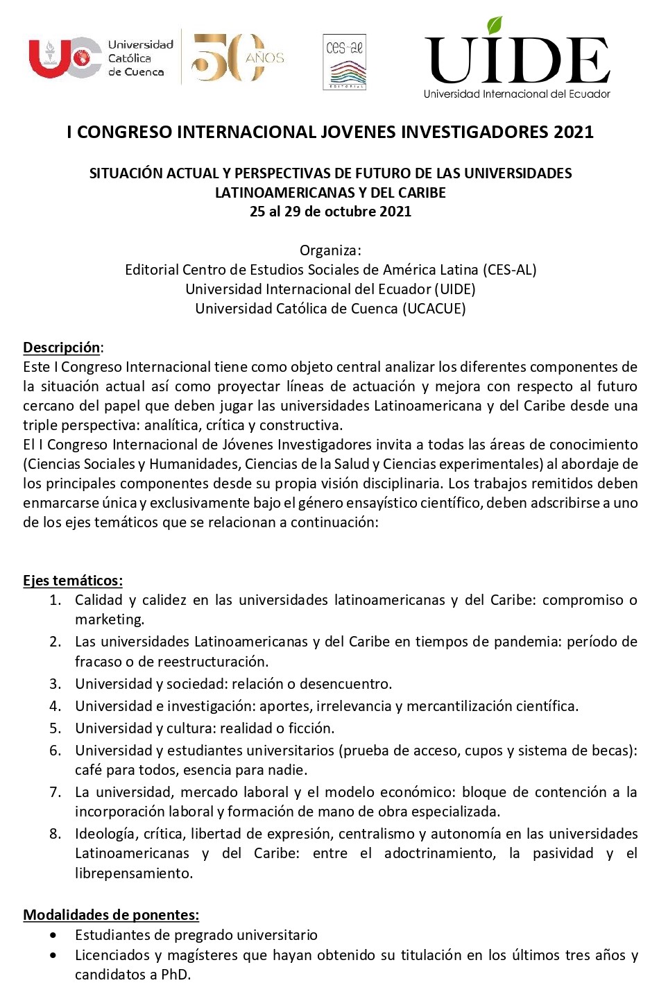 I CONGRESO INTERNACIONAL DE JÓVENES INVESTIGADORES, 2021