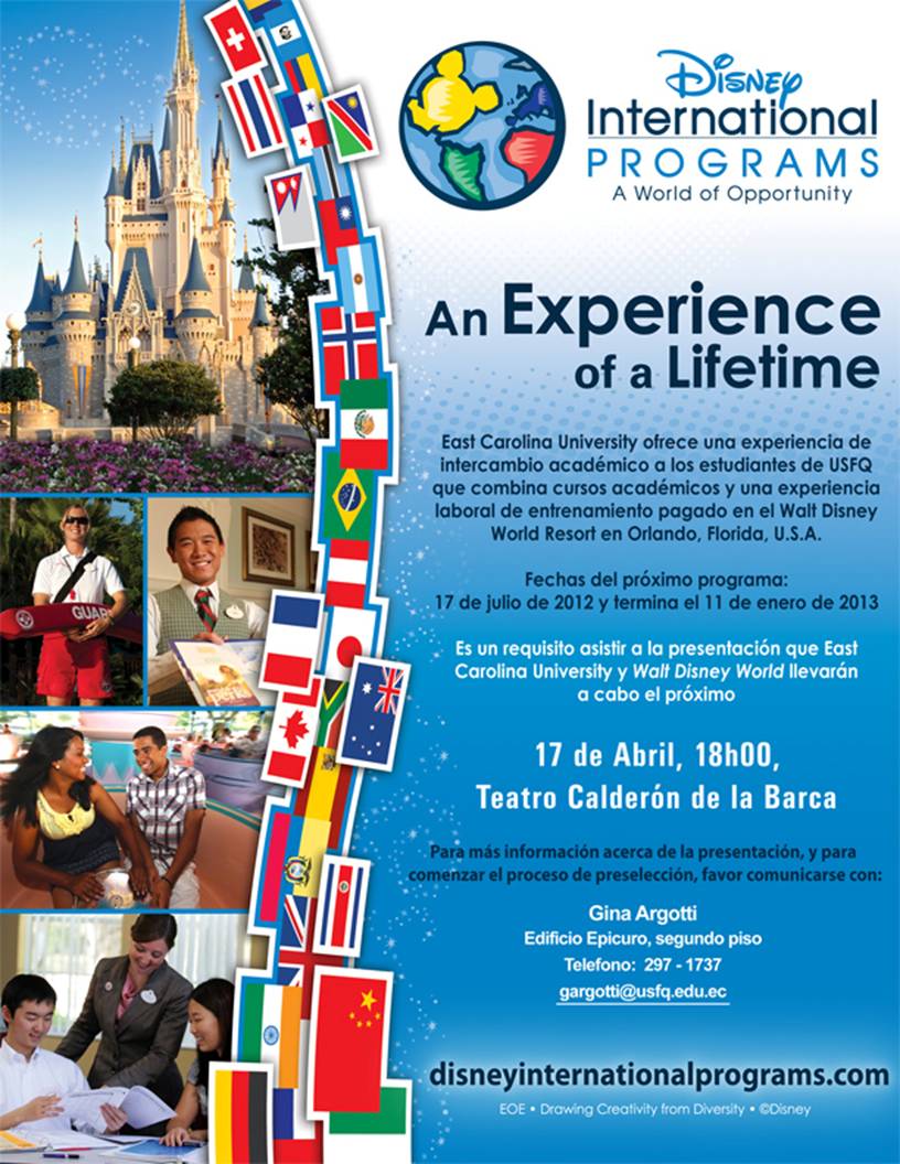 La East Carolina University y Disney International Programs te ofrecen una oportunidad única para ampliar tus horizontes profesional y académicamente. La Universidad San Francisco de Quito te invita a conocer más sobre este programa de intercambio.